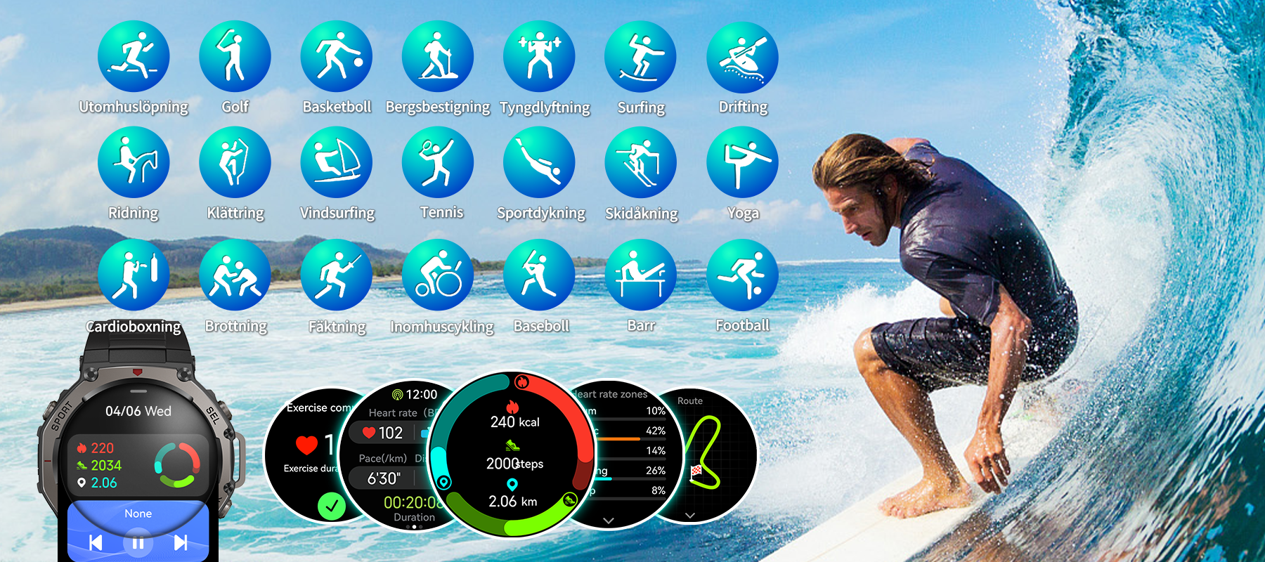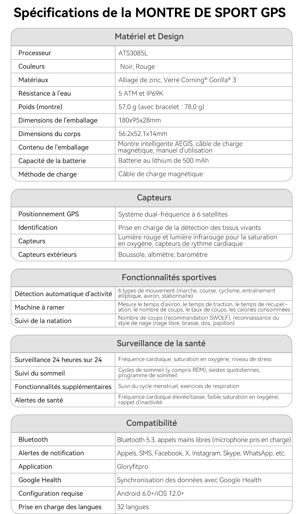 - Comprehensive Sports & Health Monitoring- Capteurs multifonctions pour un suivi précis de plus de 170 sports et indicateurs de santé.